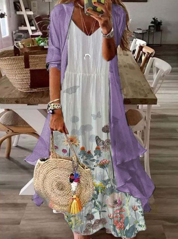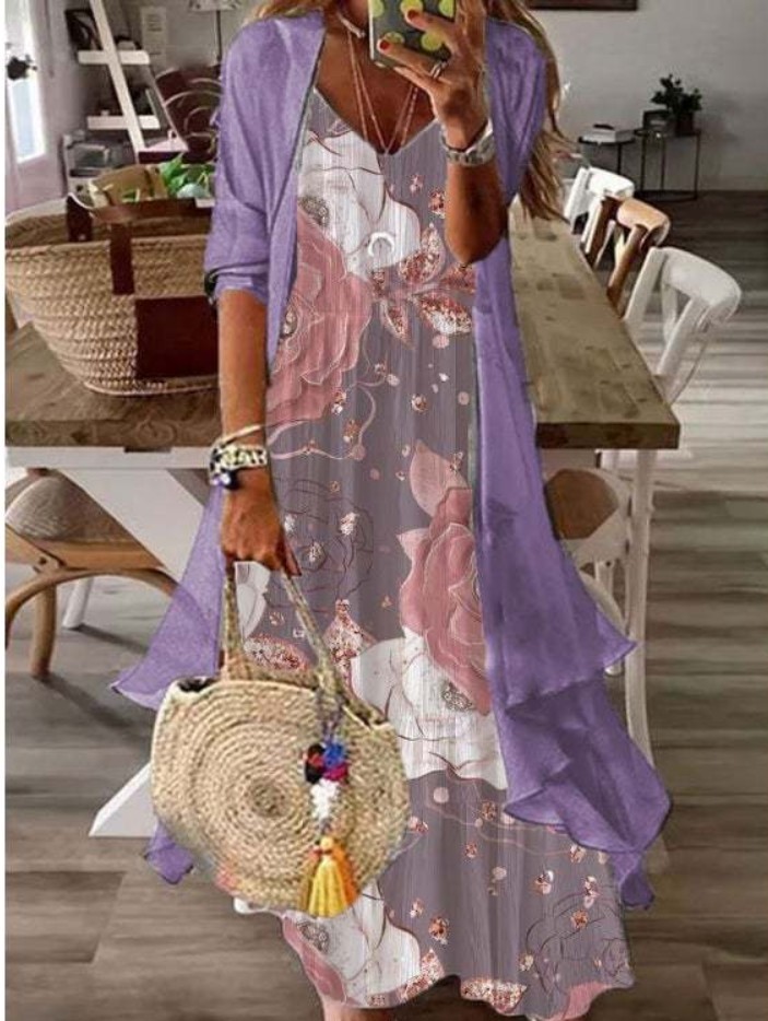 2025 European and American Summer Women's Wear printed long dress, hem dress two-piece set