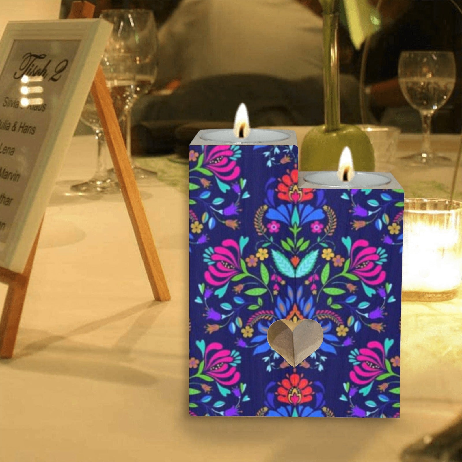 BLUE FLORAL DESIGN Wooden Candle Holder (Without Candle)