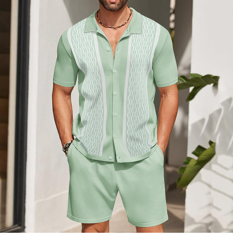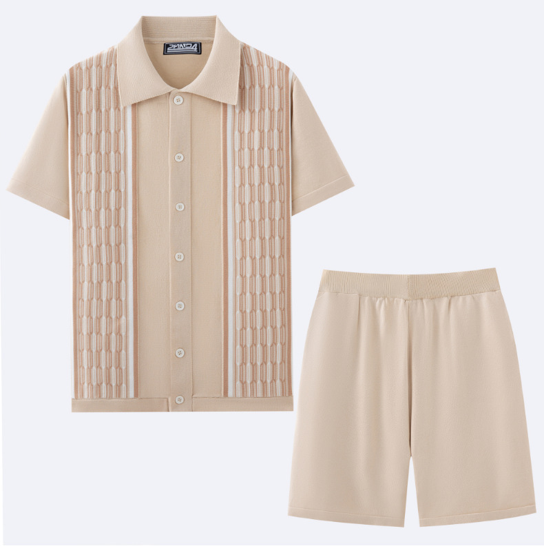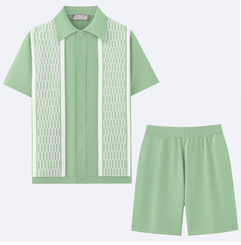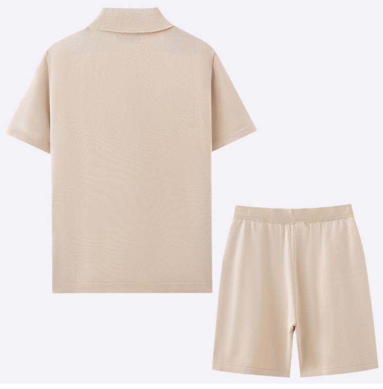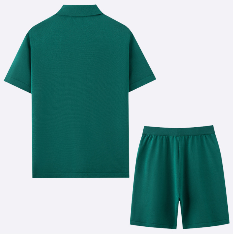 MENS SHORT SET Style Men's Wear, European and American men's cool silk jacquard two-piece knitted sweater, casual Polo shirt set SY0198