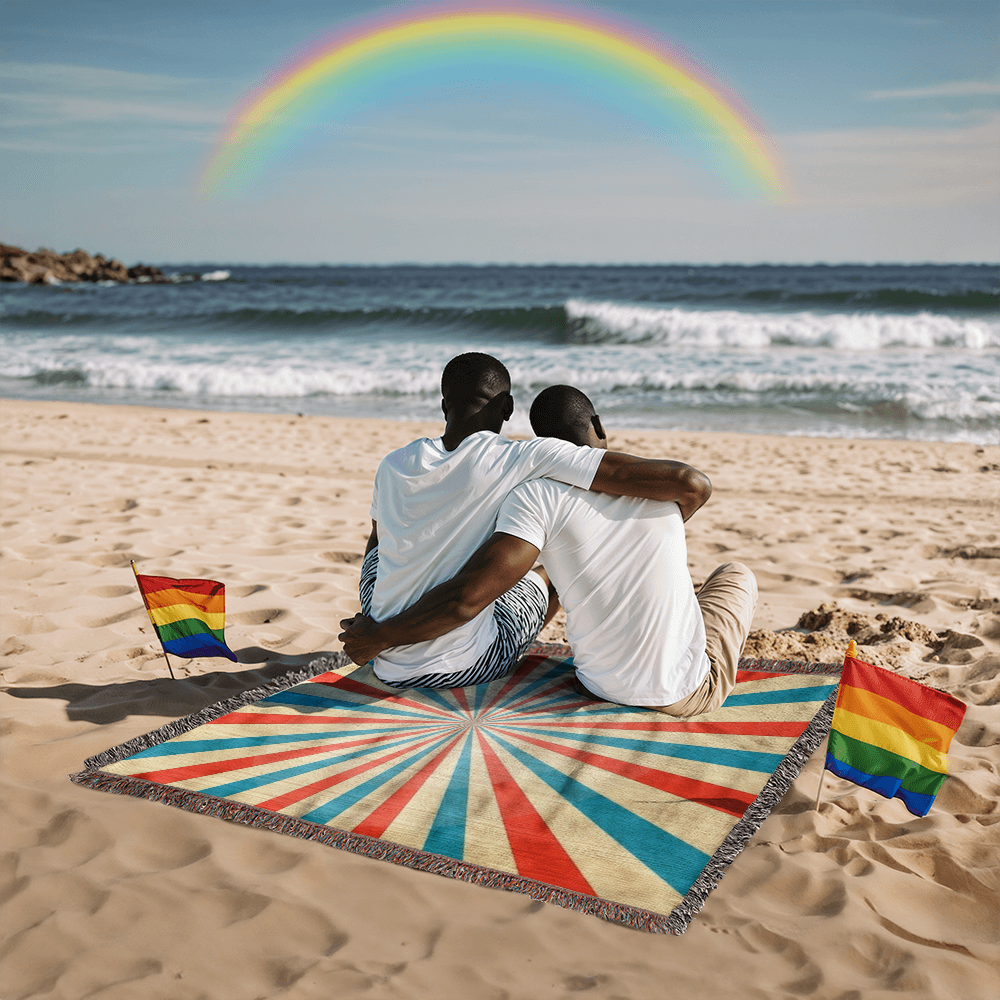 Custom Designer Circus Pattern Heirloom Artwork Woven Blanket. This custom product is lovingly woven on a loom with cozy 100% cotton yarn. It makes an ideal gift for your beloved partner, family members, or dear friends on special occasions like birthdays, anniversaries, or any event where you want to express your love and appreciation in an unforgettable way.