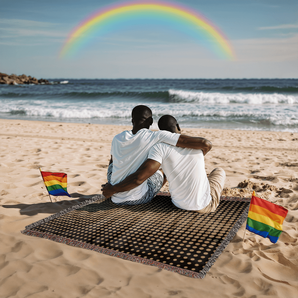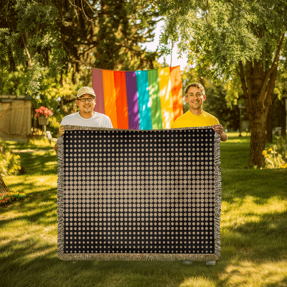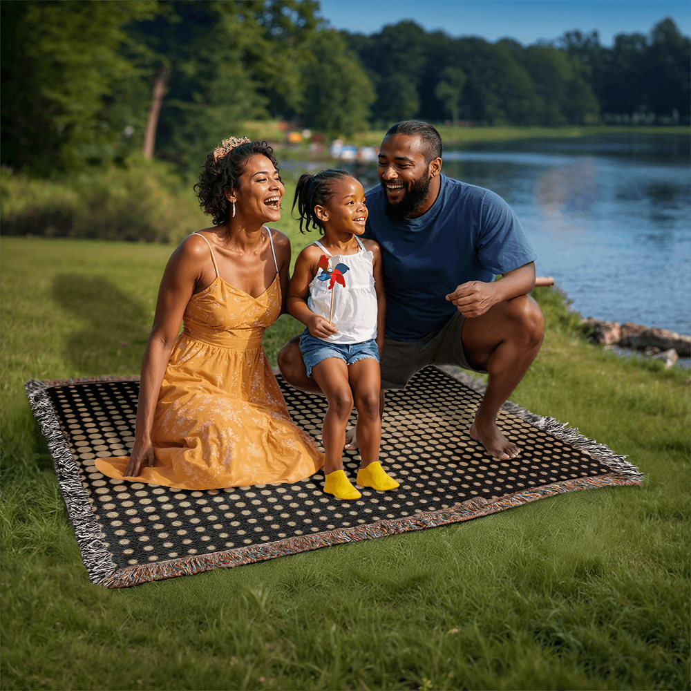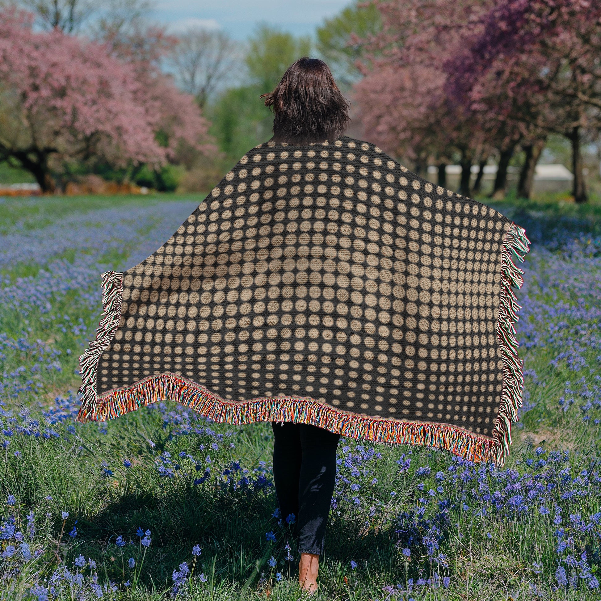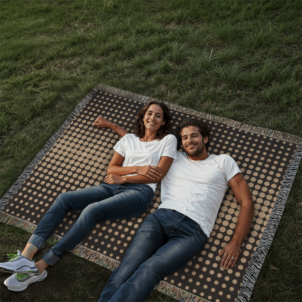 Elevate your space with this custom designer woven blanket featuring elegant gold dot heirloom artwork. Its sophisticated design adds a touch of luxury, while the soft, woven fabric provides cozy comfort. Perfect for enhancing your home décor or gifting a timeless piece, this blanket combines style and warmth effortlessly.