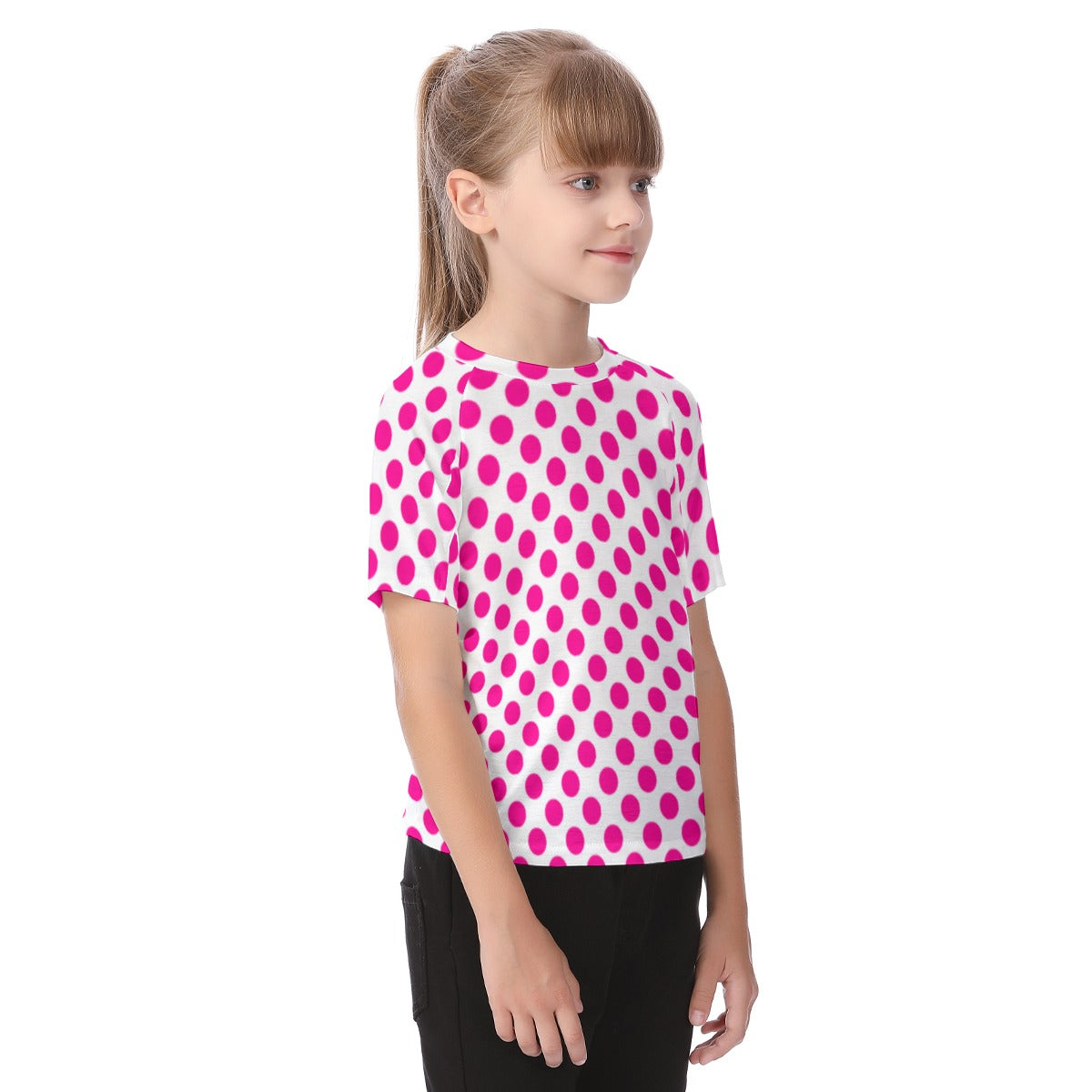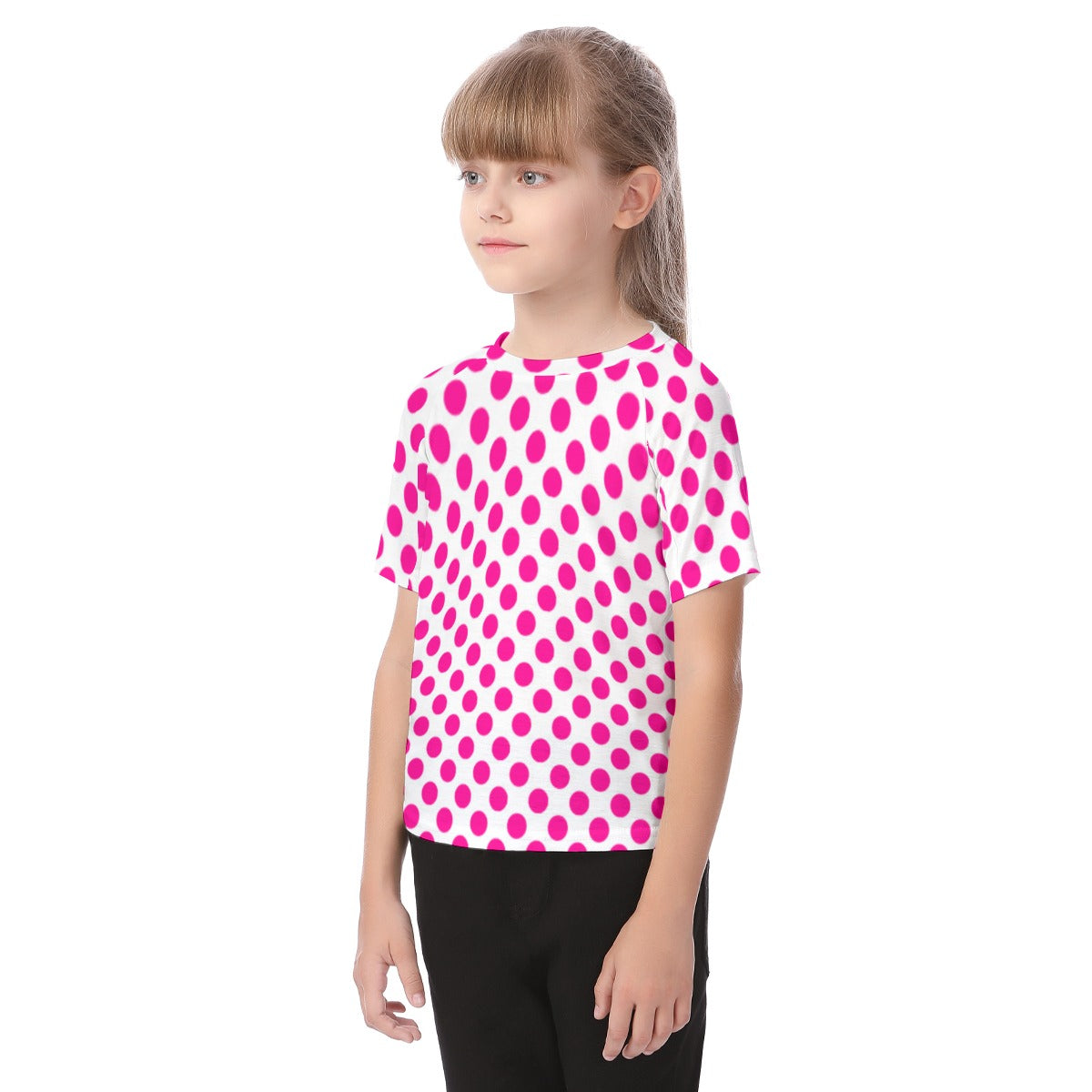 Bring a burst of color and fun to your child’s wardrobe with this Hot Pink Polka Dot Raglan Sleeve T-shirt. Featuring a lively pattern of white polka dots, this tee combines playful style with practical comfort. The raglan sleeves provide extra room for movement, making it ideal for active kids who love to run, jump, and play. Crafted from soft, breathable fabric, it keeps your little one comfortable throughout the day. Perfect for casual outings or playdates, this vibrant shirt adds a cheerful touch to any outfit.