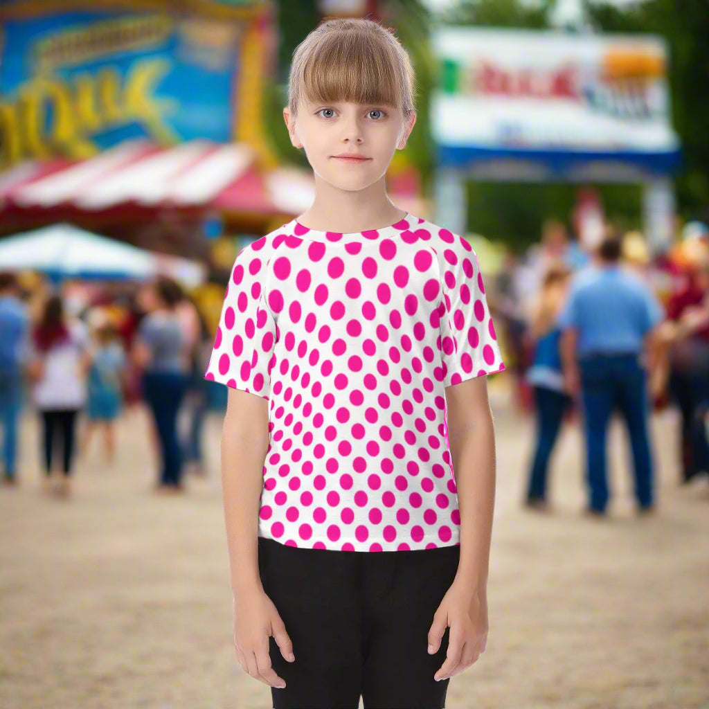Hot Pink Polka Dot Kid's Raglan Sleeve T-shirt
