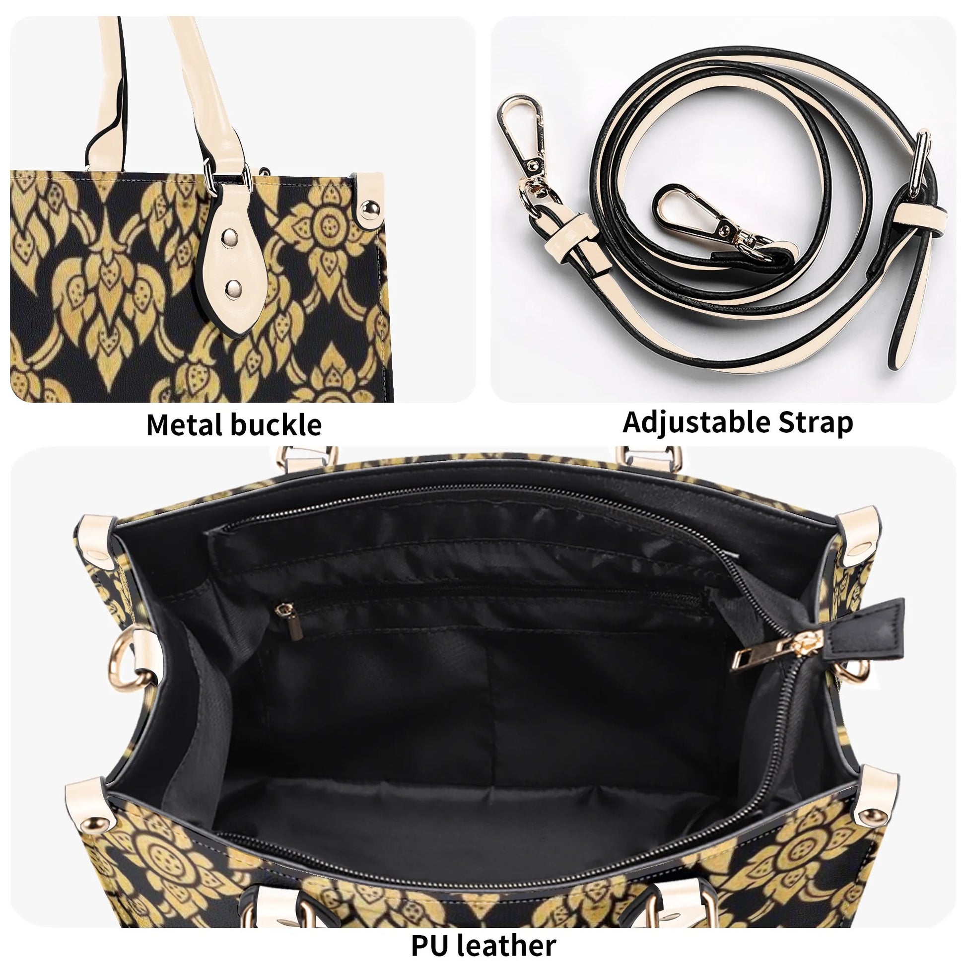 Upgrade your style with this New Version Luxury Women PU Leather Handbag. Crafted from premium PU leather, this handbag features a smooth zipper and sturdy top handles for comfortable carrying. Available in three sizes, it offers versatility and convenience for any occasion. Perfect gift for girls, moms, and office ladies. Ideal for commuting and traveling, this handbag can accommodate your cell phone, wallet, and other daily essentials.