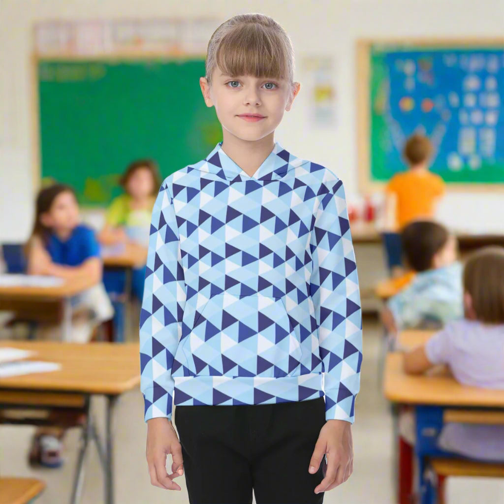 KSC's Exclusive/Custom- Young Girl's Hoodies-Blue Triangle Geometric Pattern - Kid's Hoodie