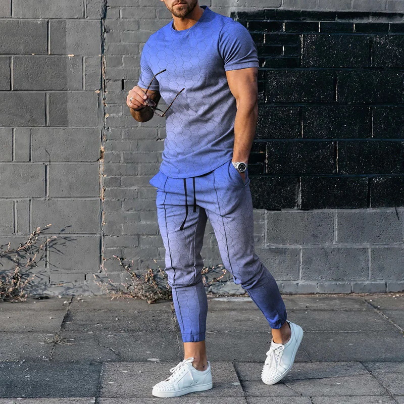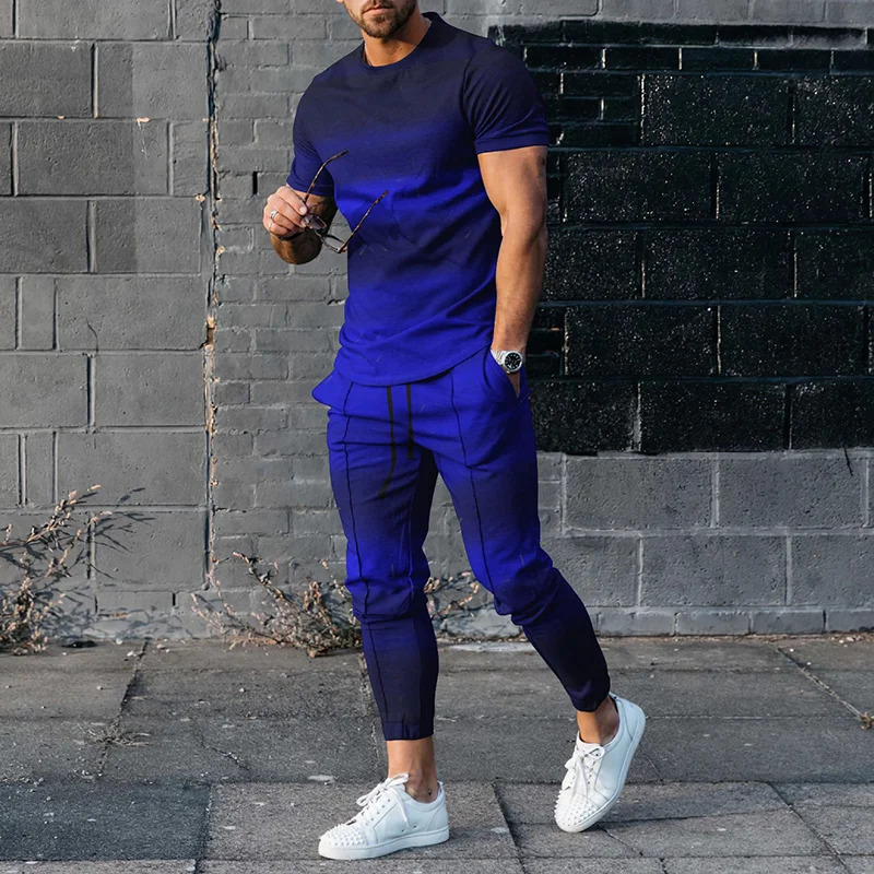 Step into summer with this vibrant men's casual sports suit, featuring colorful stitching that adds a fun twist to your look. Designed for comfort and style, the trendy four-sided outfit set includes lightweight trousers perfect for warm days. Whether you're hitting the streets or lounging with friends, this playful ensemble keeps you cool and effortlessly stylish.