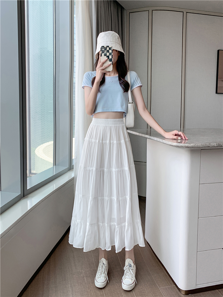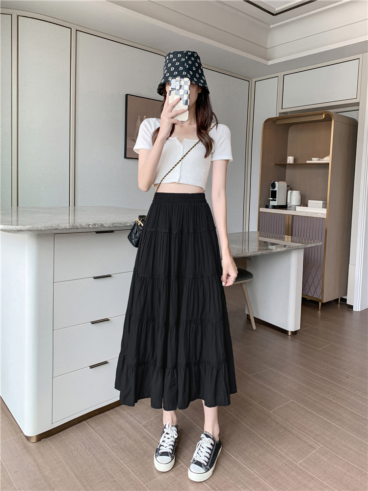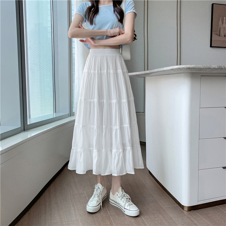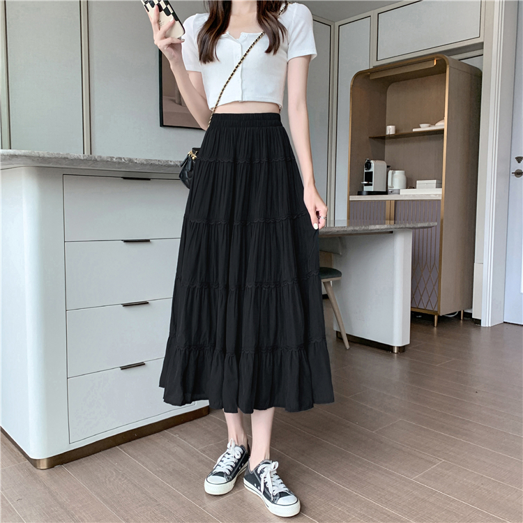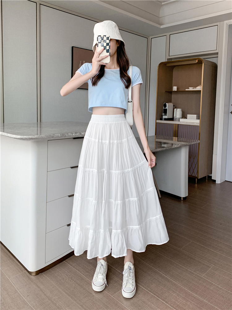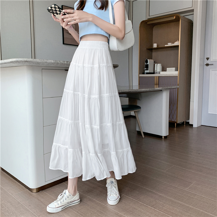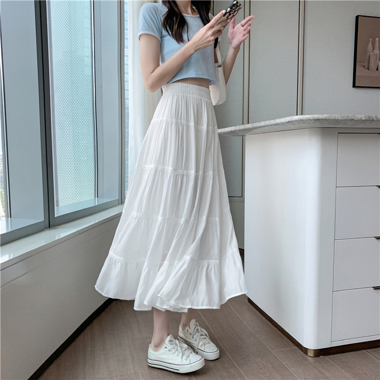 Elevate your summer wardrobe with this stylish women's cake skirt featuring a mid-length pleated design and slimming high waist. The A-line silhouette flatters your figure while offering comfortable movement, making it perfect for warm days and casual outings. Its elegant umbrella shape adds a touch of sophistication, ensuring you look effortlessly chic wherever you go. Embrace both comfort and fashion with this versatile long skirt.