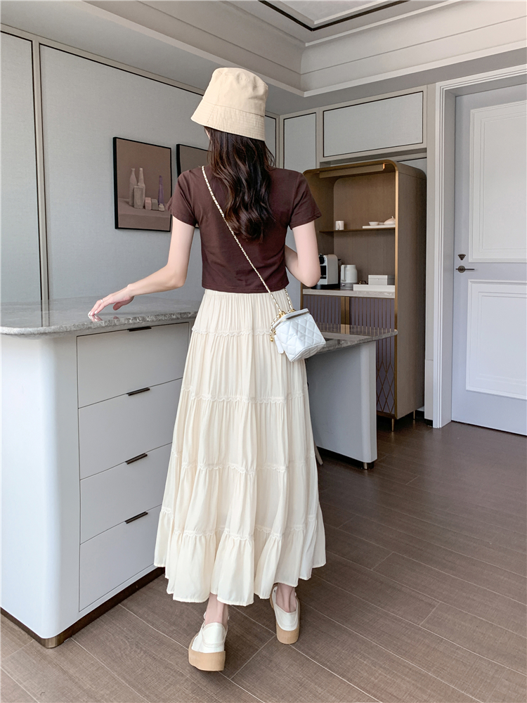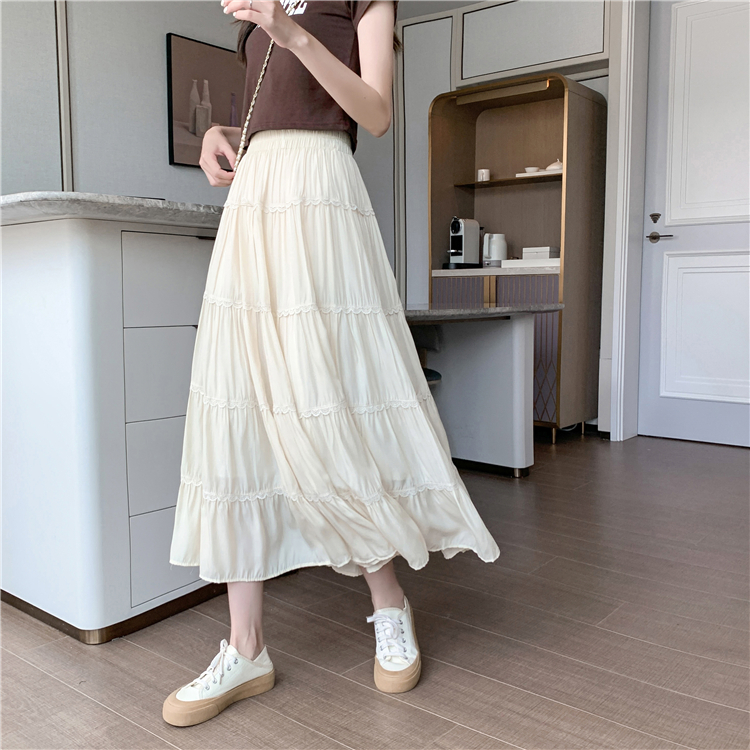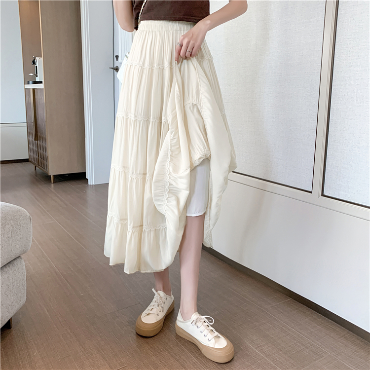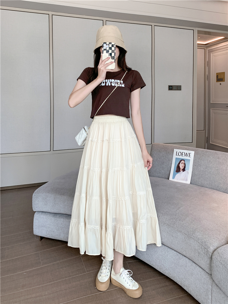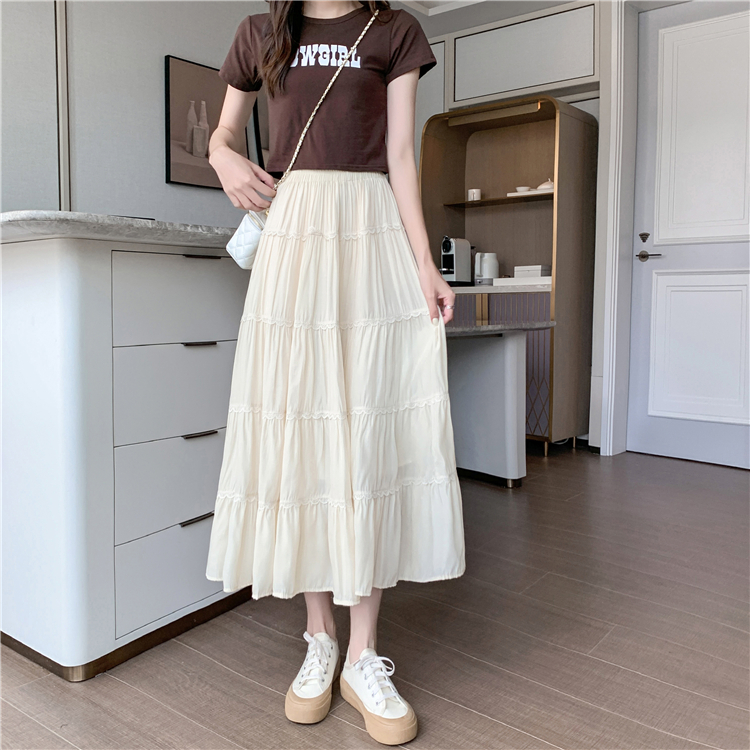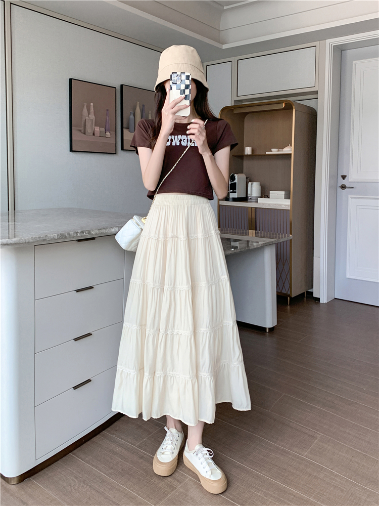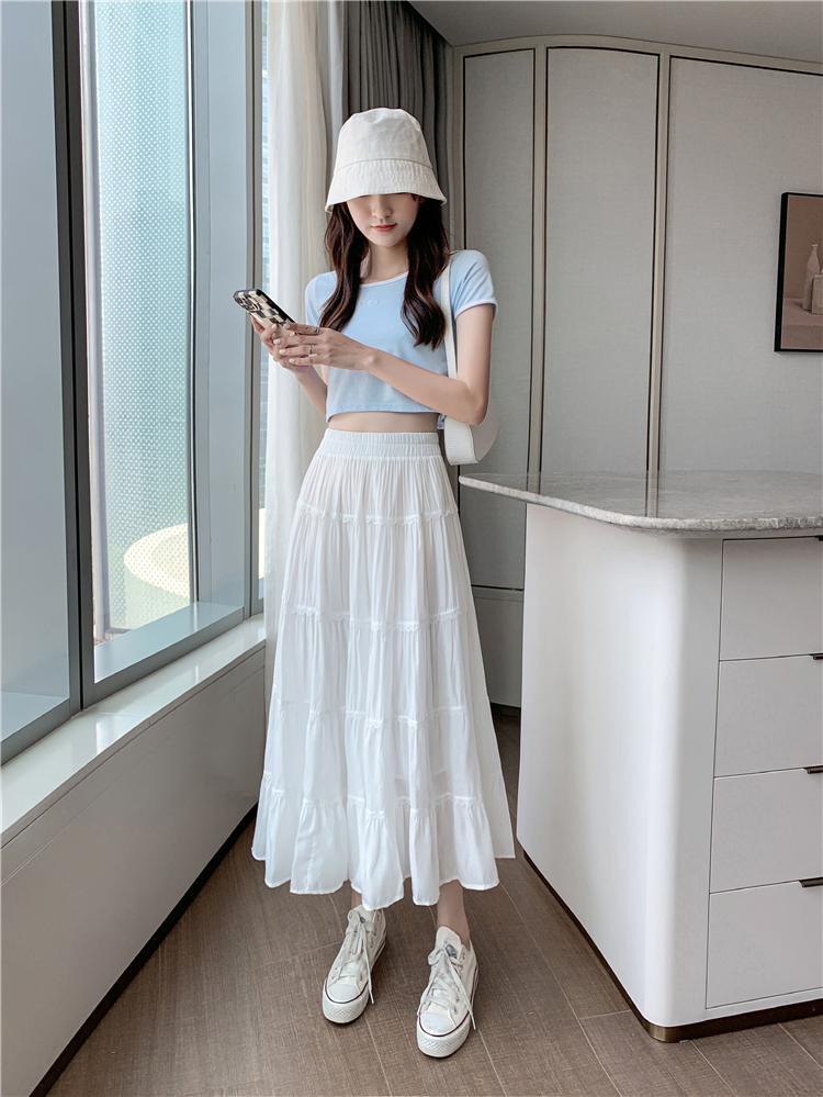 Elevate your summer wardrobe with this stylish women's cake skirt featuring a mid-length pleated design and slimming high waist. The A-line silhouette flatters your figure while offering comfortable movement, making it perfect for warm days and casual outings. Its elegant umbrella shape adds a touch of sophistication, ensuring you look effortlessly chic wherever you go. Embrace both comfort and fashion with this versatile long skirt.