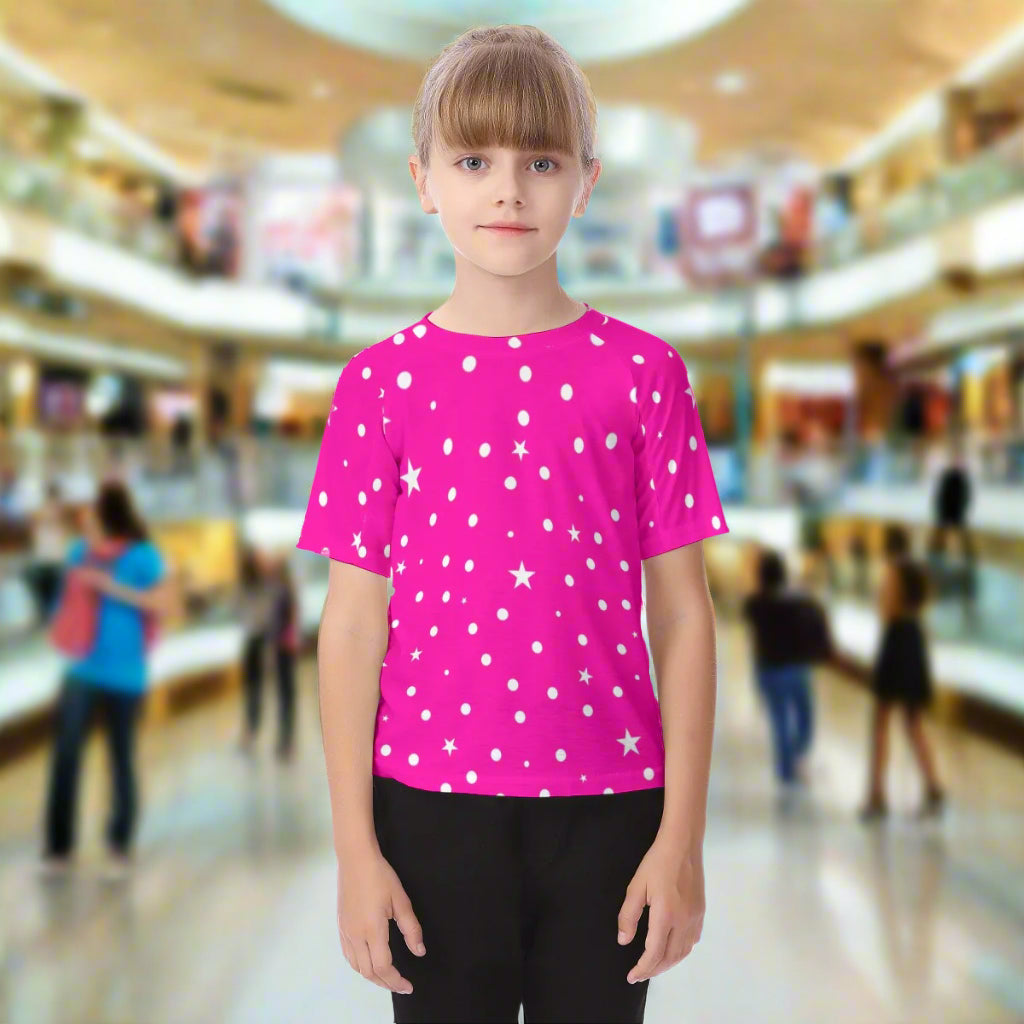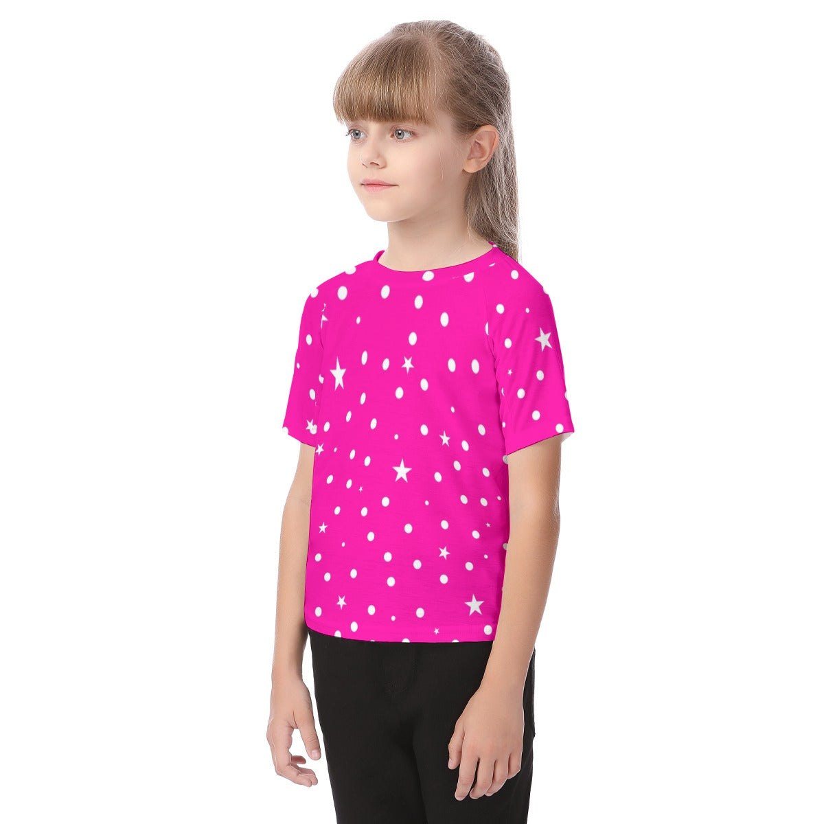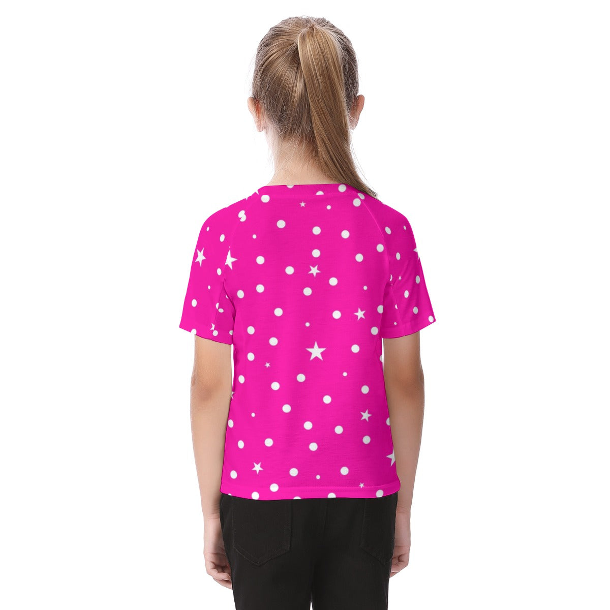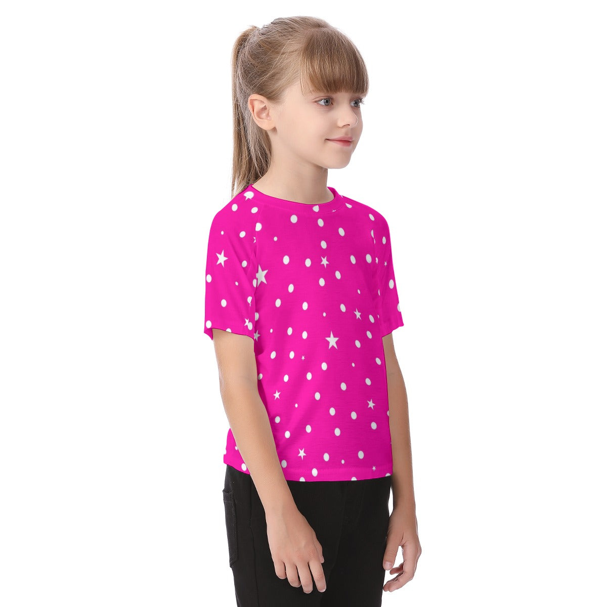 New Hot Pink Girls Polka Dot & Star Dot Kid's Raglan Sleeve T-shirt
