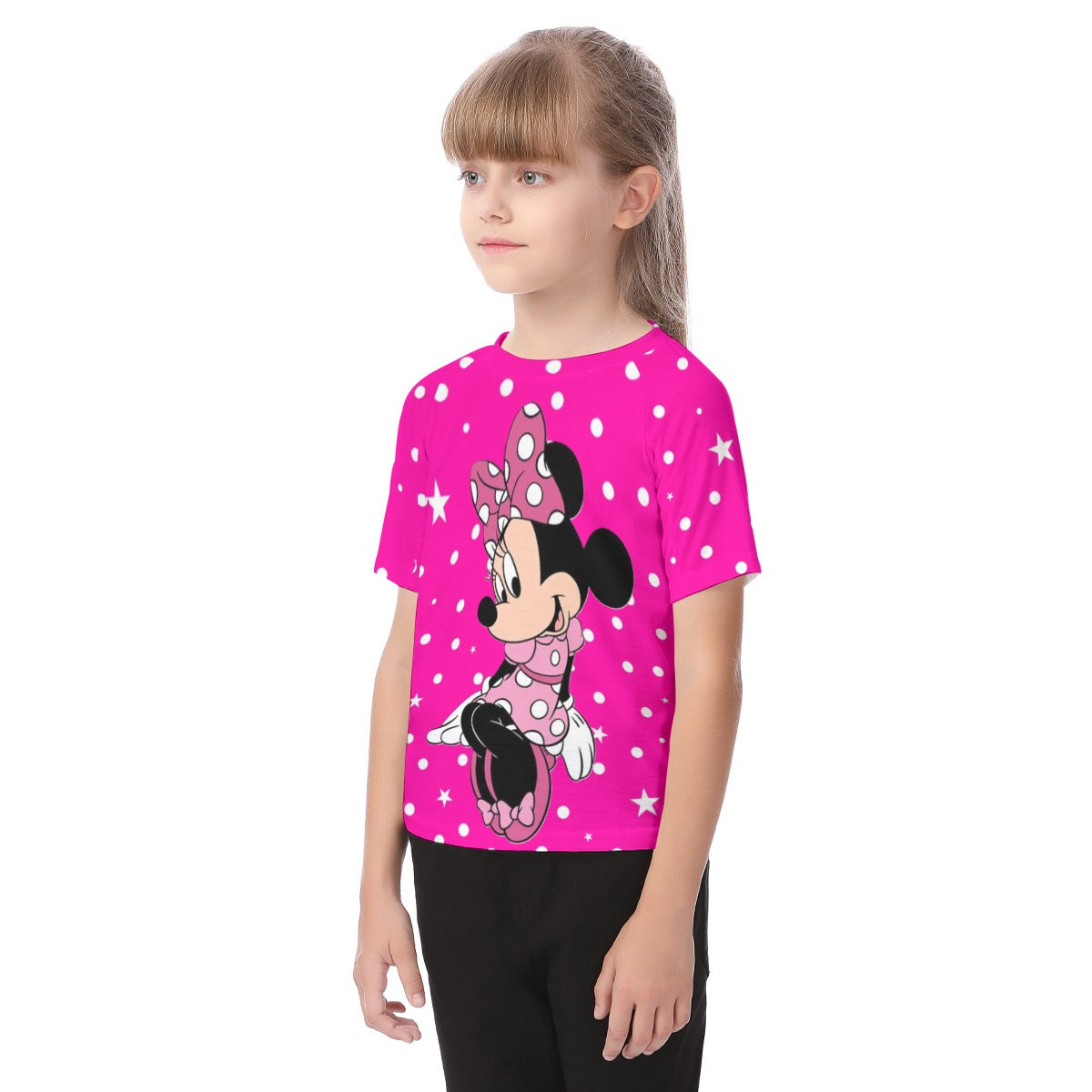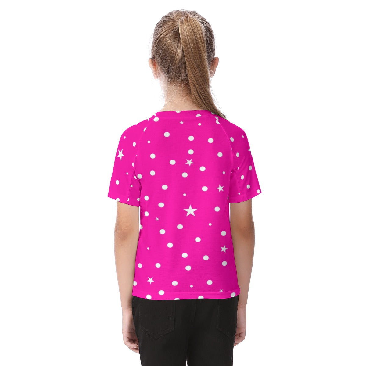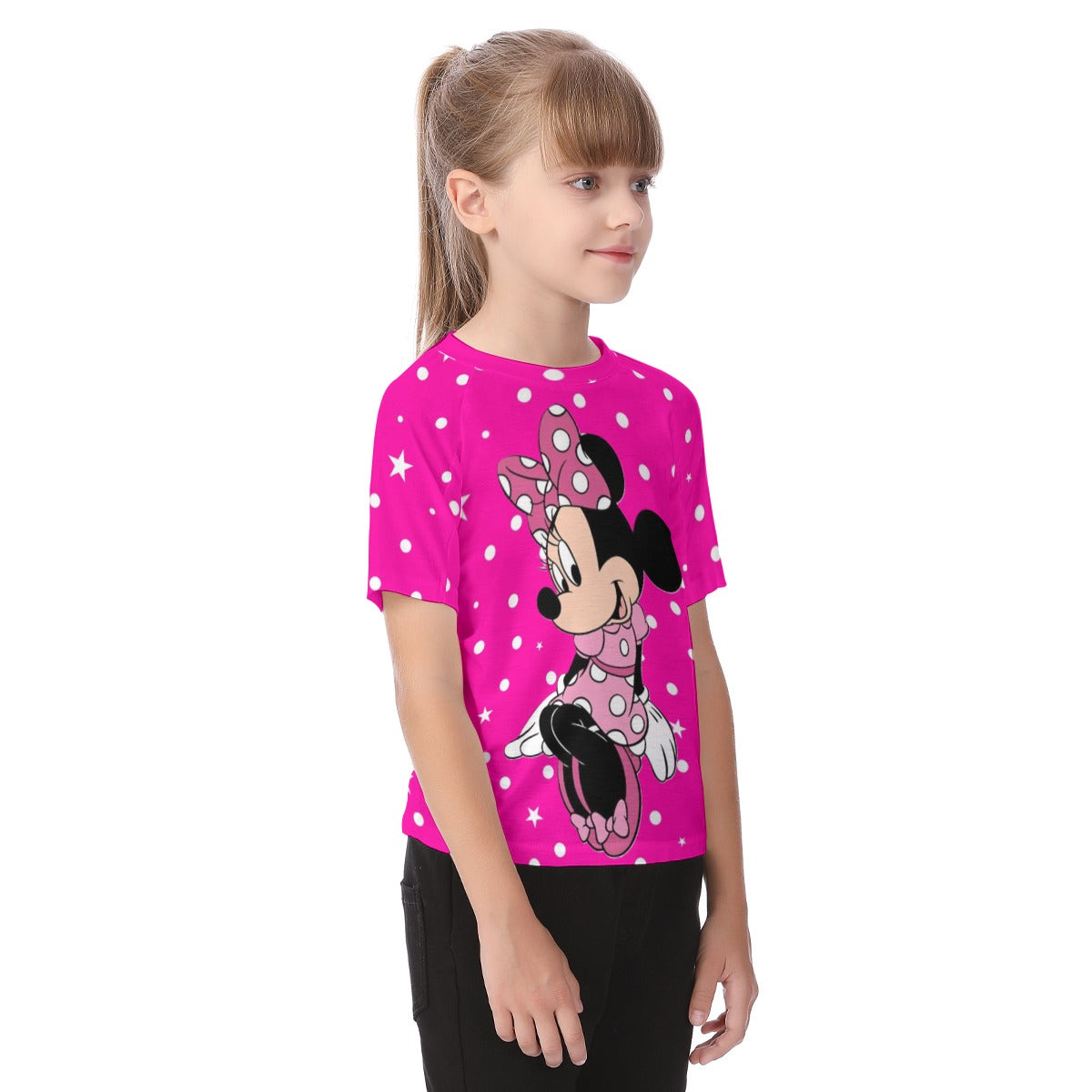 New Hot Pink White Polka & Star Dot Minnie Kid's Raglan Sleeve T-shirt