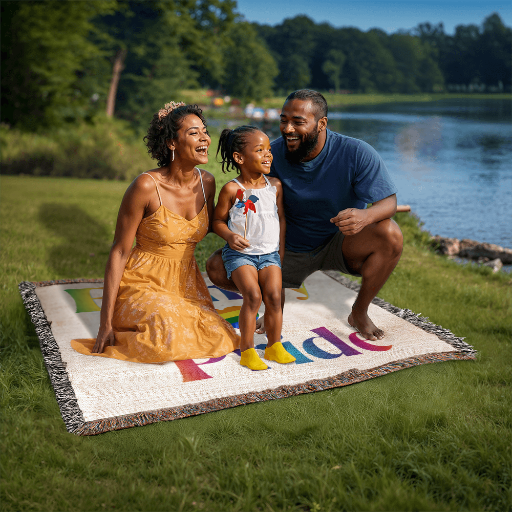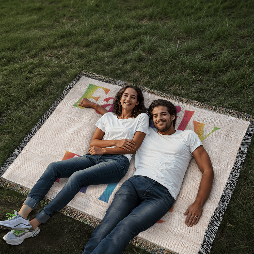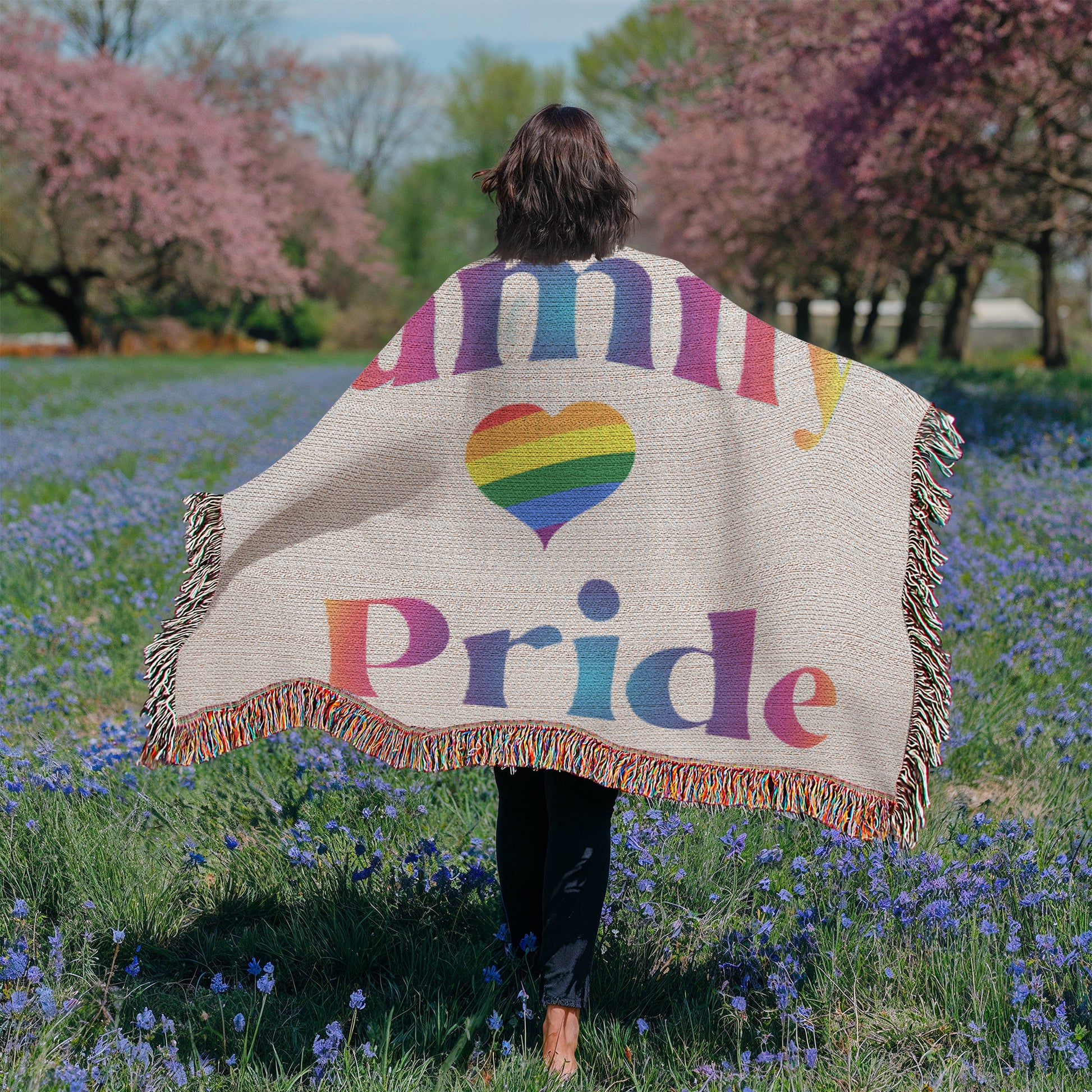 POPULAR DESIGN- Custom Designer Family Pride Rainbow Heart Heirloom Artwork Woven Blanket