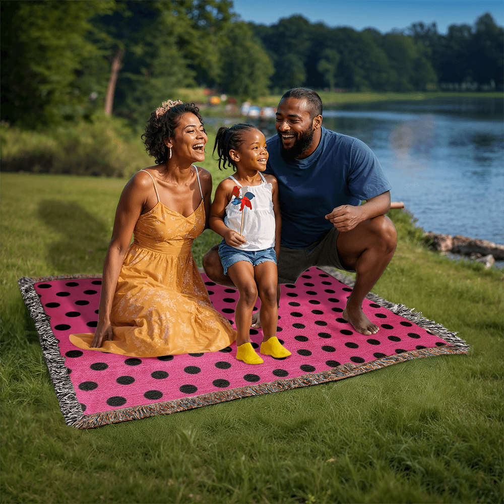TRENDING -CUSTOM DESIGNER LADY BUG BLACK POLKA DOT PINK HEIRLOOM ARTWORK WOVEN BLANKET